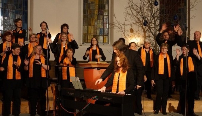 Mit Pfrn. Bettina Schley, dem Gospelchor "Higher in the Lord" und Arlette Gerber, Leitung.
